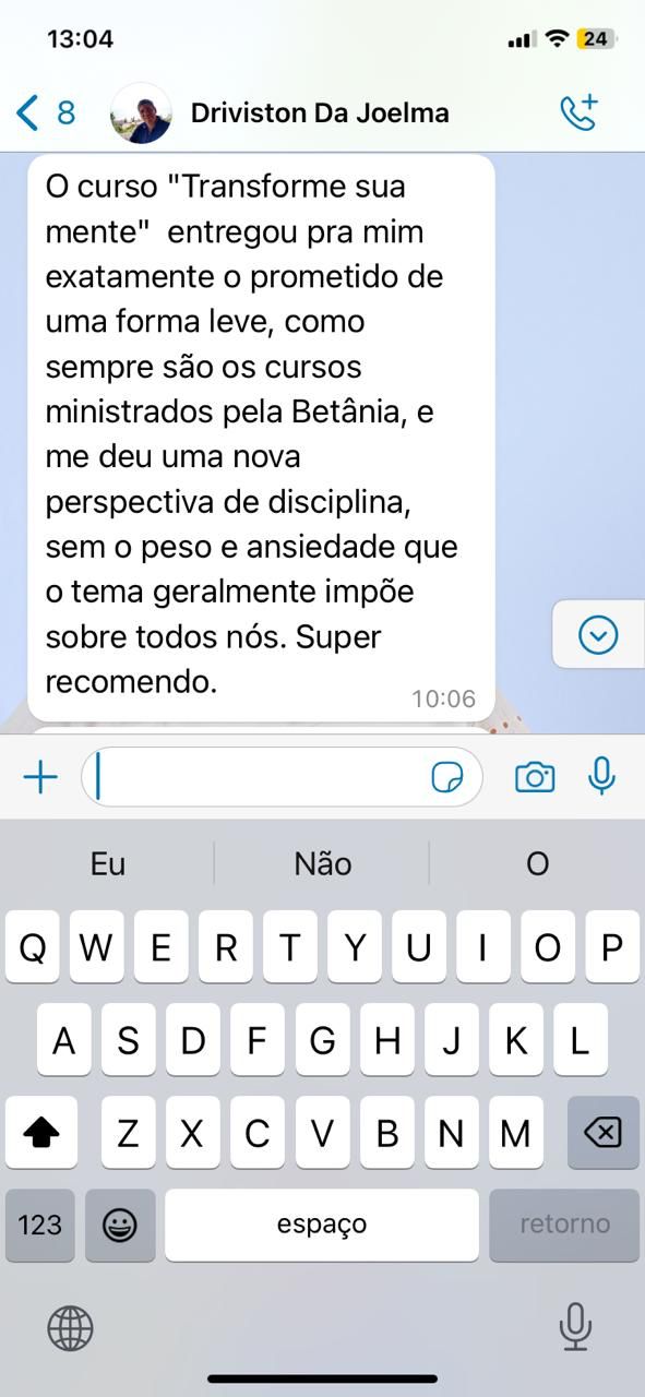 Com o curso Transforme Sua Mente você aprenderá a quebrar padrões de pensamento negativos e a redescobrir a clareza e a tranquilidade que merecem fazer parte da sua vida. Imagine acordar todos os dias sentindo-se mais forte, mais centrado(a) e com um controle genuíno sobre suas emoções. A mudança está mais próxima do que você imagina.